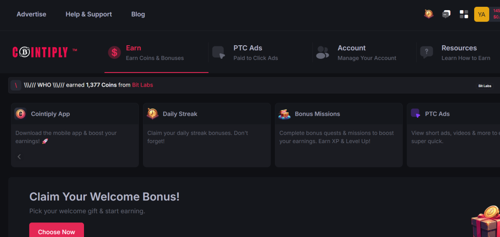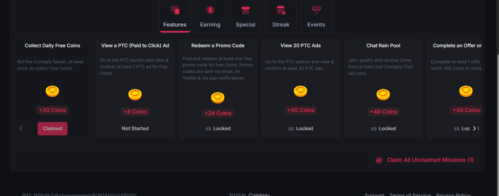 Cointivity: Gamification system where you earn CointiPoints for every 10 coins earned. Spend points on items that boost your earning potential.