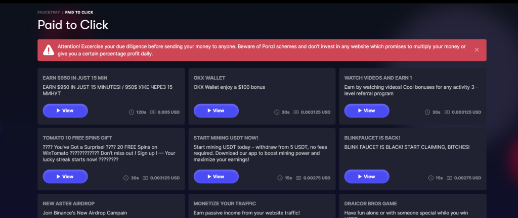 Earn crypto by viewing paid ads directly on FaucetPay: