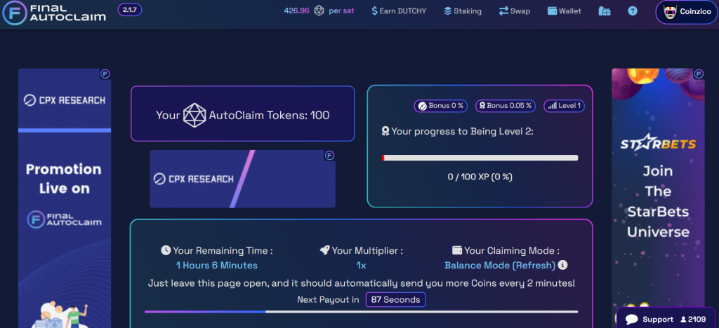 - Level Up For XP Bonuses: Higher levels boost faucet payouts by up to 10% extra over time.